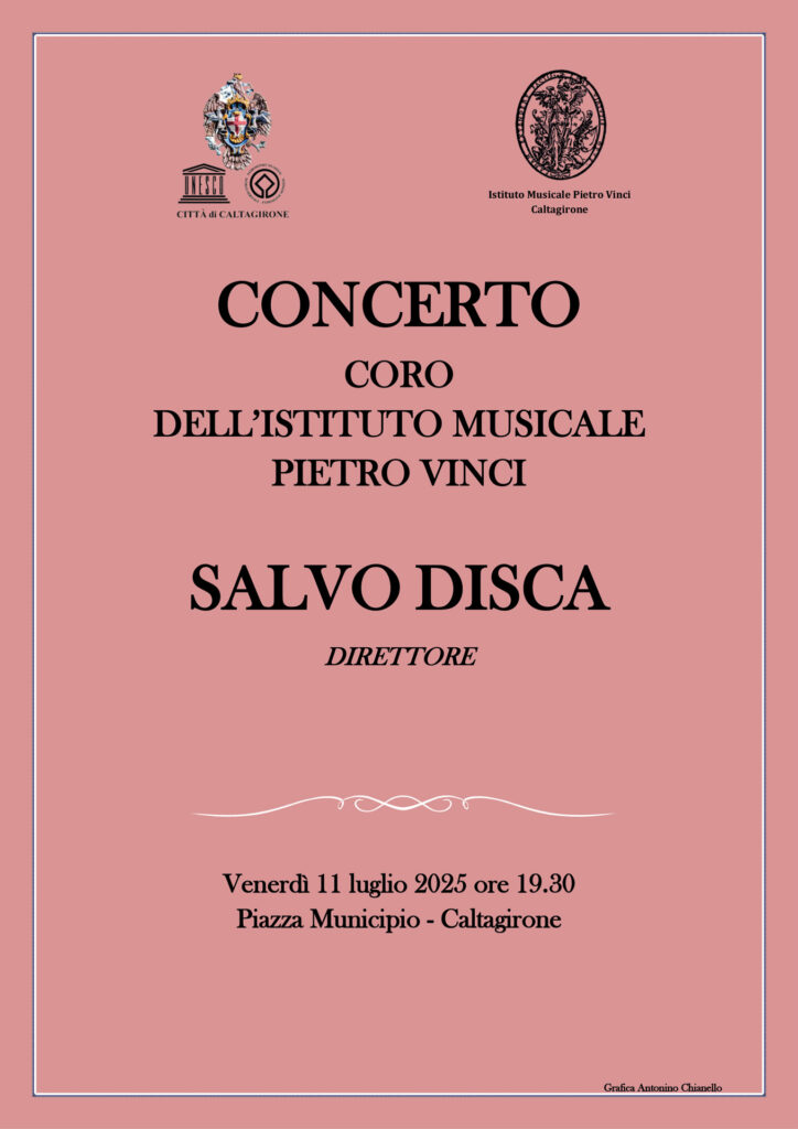 In occasione del concerto dell’11 luglio, previsto alle 19:30 in piazza Municipio, si esibirà il Coro, formato dagli allievi dell’Istituto Musicale Pietro Vinci, il coro sarà diretto dal M° Salvo Disca.
