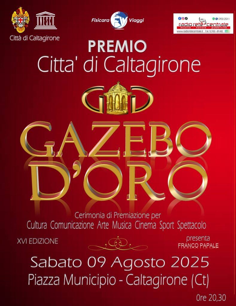 Torna l’appuntamento con il Premio Gazebo d’Oro, giunto alla sua 16ª edizione, un evento che celebra le eccellenze siciliane nei campi della Cultura, Comunicazione, Arte, Sport e Spettacolo.