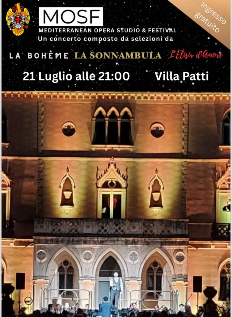 Alle ore 21:00, le voci della Mediterranean Opera Studio& Festival interpreteranno alcune delle pagine più celebri del repertorio operistico: