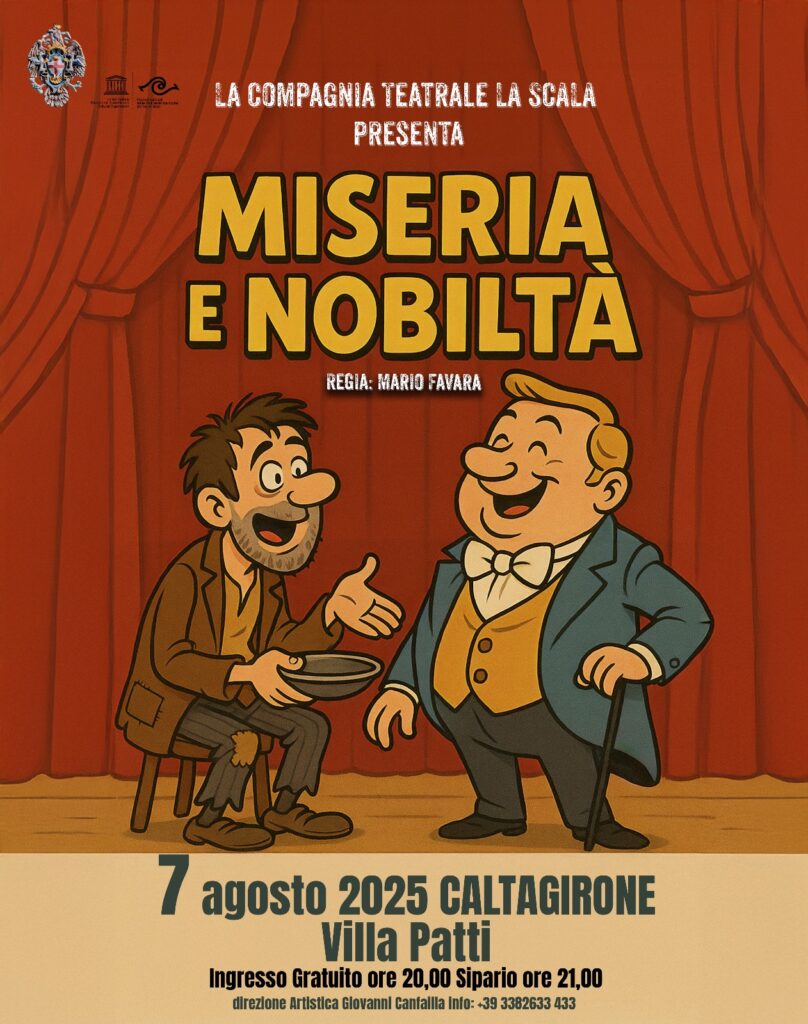 Il primo appuntamento “Miseria e Nobiltà”, celebre commedia di Eduardo Scarpetta, racconta con irresistibile umorismo le disavventure di un gruppo di poveri popolani napoletani che, per sopravvivere alla fame, si prestano a impersonare nobili in un’improbabile messinscena orchestrata da un giovane innamorato.